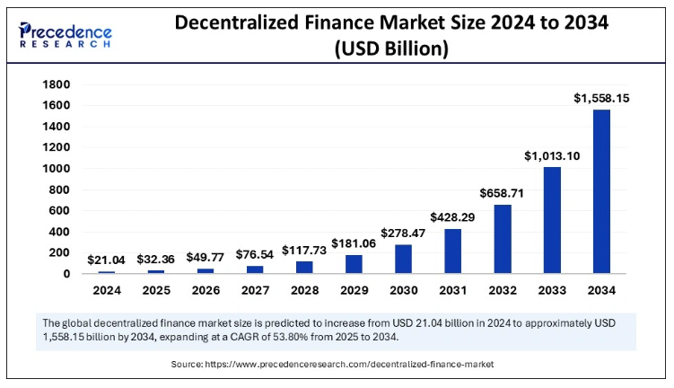 The future of money is rapidly becoming digital, decentralized, and powered by blockchain technology. With the global blockchain banking market projected to reach $22.9 billion by 2025 and more than 55% of retail banks worldwide already piloting or using blockchain-based solutions. In the broader decentralized finance (DeFi) space, the market is expected to surge from $44.59 billion in 2025 to over $2 trillion by 2035, driven by a compound annual growth rate of 46.8%.